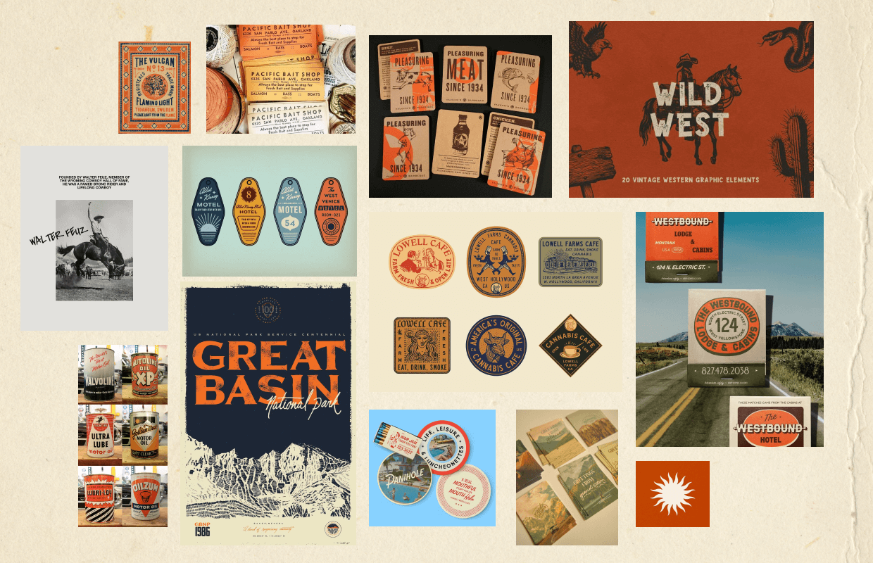 Wes Anderson’s Route 66 Road Trip, the direction ultimately selected, is warm, cinematic, and intentionally nostalgic, drawing from classic roadside Americana through a carefully curated, storybook lens. Retro typography, structured layouts, and harmonious color palettes create a sense of order and charm, while travel badges and maps evoking the romance of the open road. It’s pioneer-meets-roadside aesthetic that feels optimistic and timeless, inviting customers into a journey that’s as considered as it is adventurous.