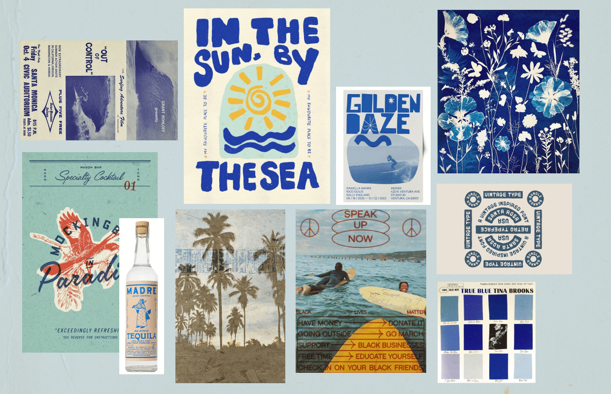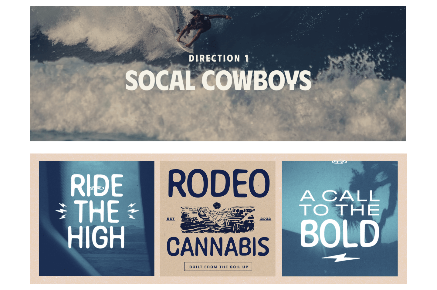 SoCal Cowboys is a relaxed, sun-faded take on the West, influenced by surf and skate culture rather than frontier mythology. Washed blues, sandy neutrals, and warm, nostalgic tones pair with playful, graphic typography to create a design-forward aesthetic that feels effortless and modern. Subtle Western cues—postcards instead of spurs, palm trees instead of cacti—give the brand a laid-back confidence rooted in style, creativity, and ease.