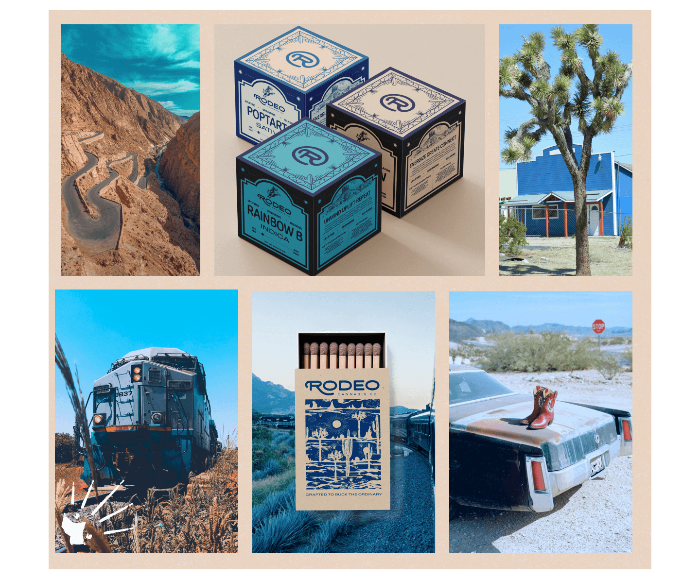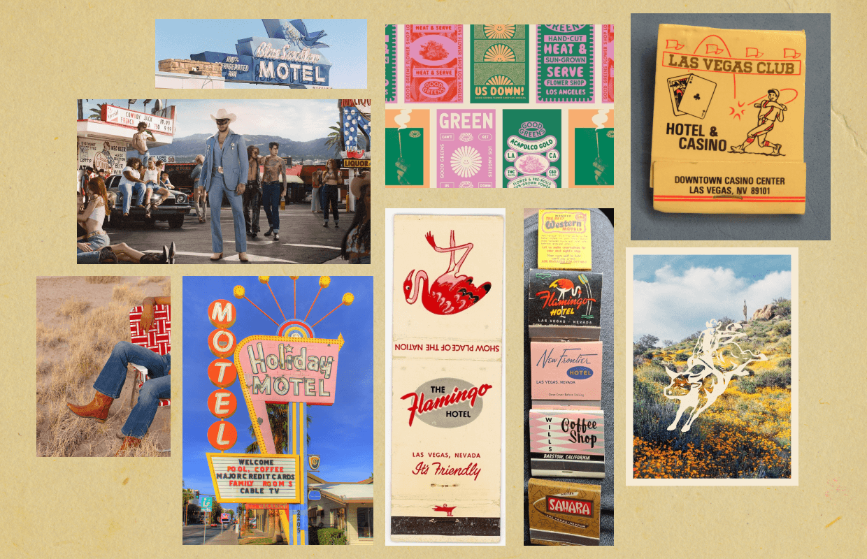 With that spirit in place, we explored three distinct—but connected—creative directions: SoCal Cowboys, Nevada Truckstop Party, and Wes Anderson’s Route 66 Road Trip.